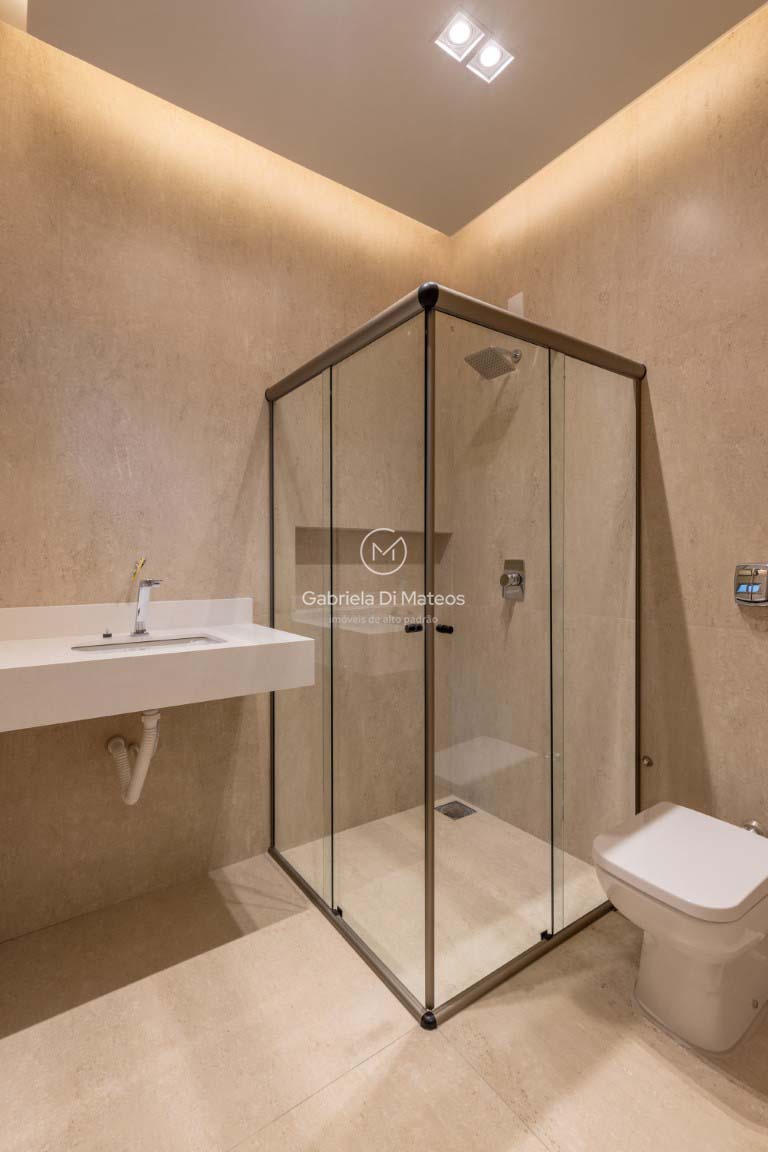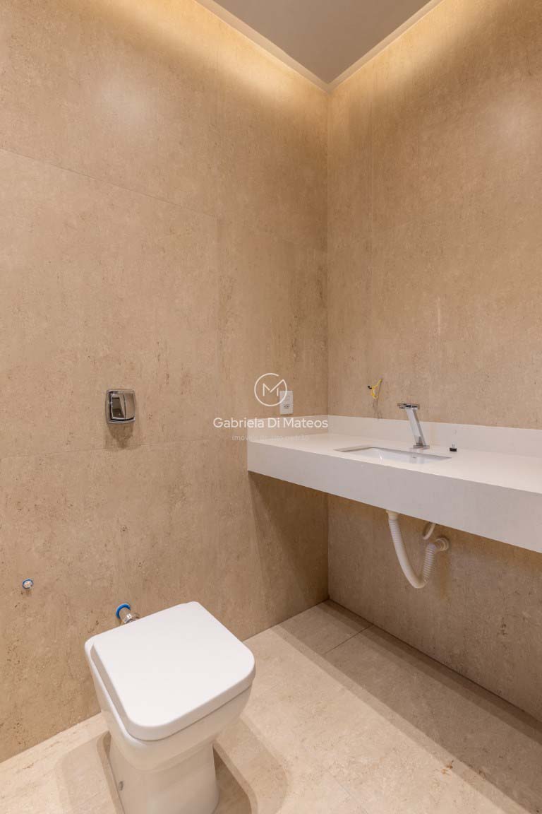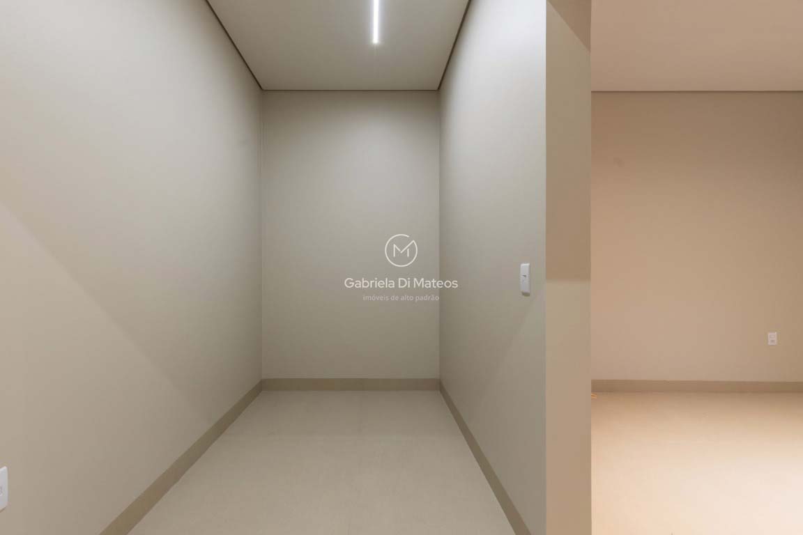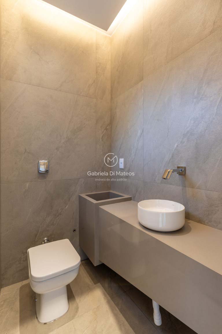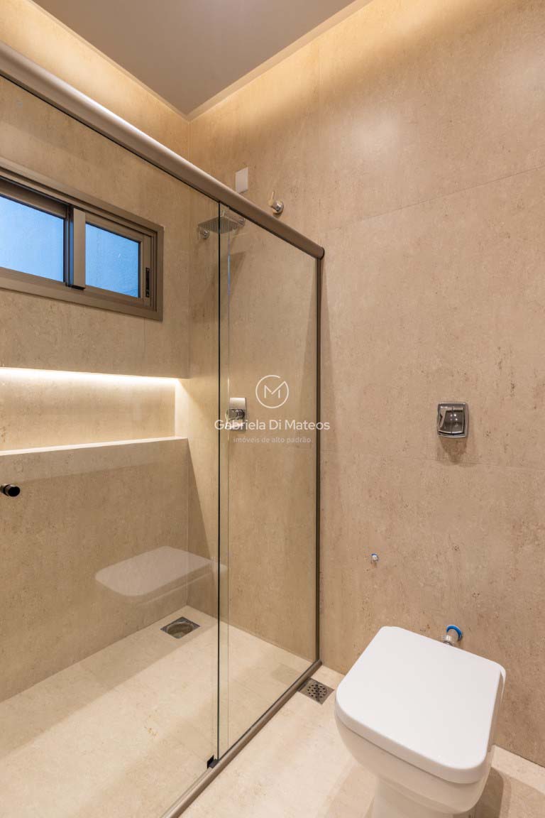 A fachada tem estilo contemporâneo com pedras naturais e pintura. Esquadrias em alumínio na cor perita (automatizadas nos quartos).